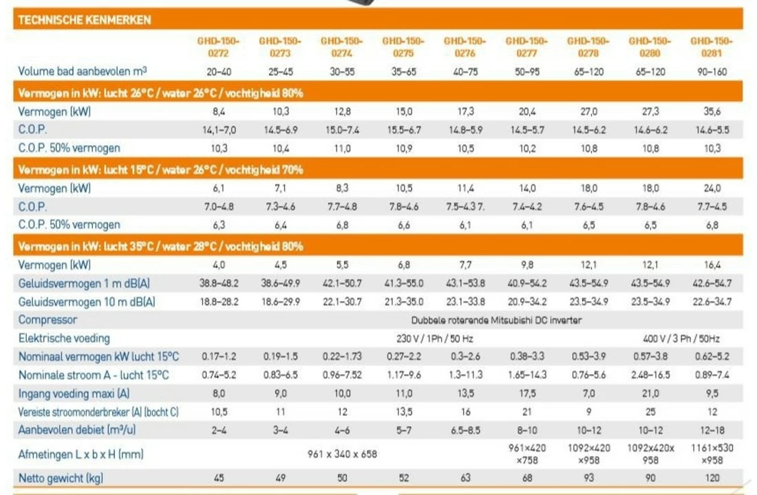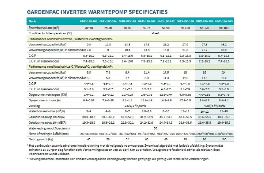 Garden PAC Garden Pac Inverter R3235.6kW 380v 90-160m3 Zwembad Warmtepomp