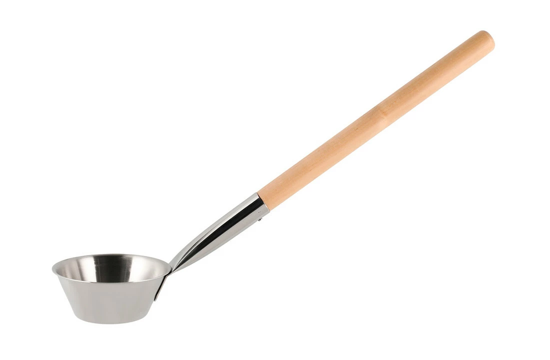 De samenwerkingscollectie Rento × Harri Koskinen heeft een stijlvol en eenvoudig ontwerp in lijn met de Scandinavische designesthetiek die typisch is voor zowel de ontwerper als onze producten. De saunalepel is gemaakt van glanzend staal en het handvat is van berken. Ontwerp door Harri Koskinen.