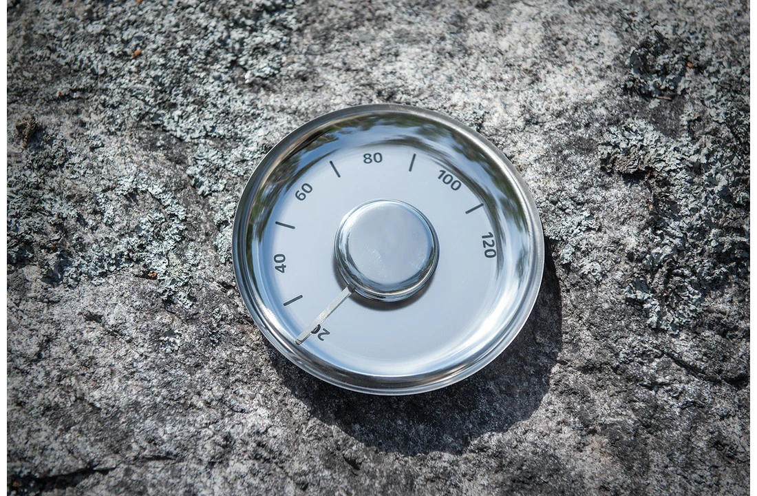 De samenwerkingscollectie Rento × Harri Koskinen heeft een stijlvol en eenvoudig ontwerp in lijn met de Scandinavische designesthetiek die typisch is voor zowel de ontwerper als onze producten. De saunathermometer is gemaakt van glanzend staal en de temperatuur wordt weergegeven in graden Celsius. Ontwerp door Harri Koskinen.