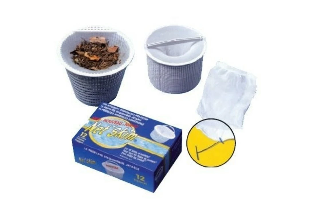 Net’skim is een eenmalig bruikbaar voorfilter dat geplaatst wordt in de skimmermand van het zwembad of spabad.